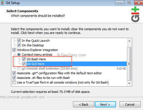 You have to select one of two highlighted items below. Bash gives you a command shell to work with Git, whereas GUI gives a small GUI to use Git repos.