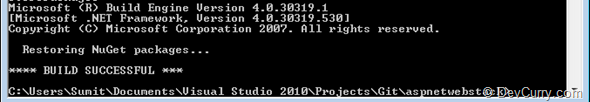 We could have done the same thing using the BASH shell by typing the following command in the BASH Shell. ‘aspnetwebstk’ is the target folder into which the source will be pulled.