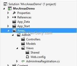 3. This adds the Areas folder to the project with the following hierarchy
