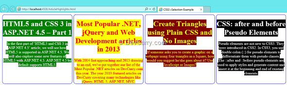 Now run the web page by pressing “F5” and you will see four divs with an article title and description about them as shown here –